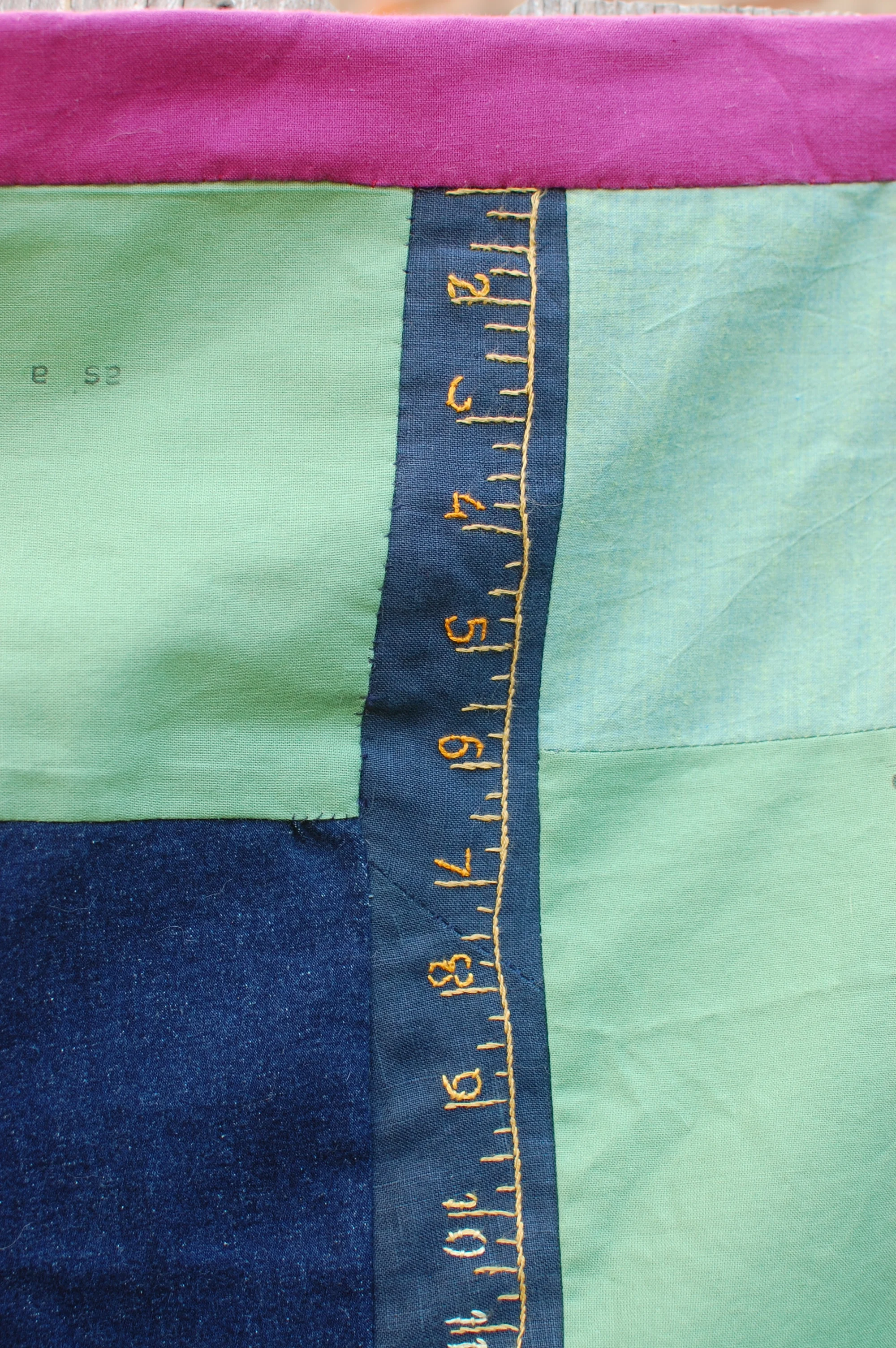 The design of this quilt is based on the patchwork star design of the 1836 baby quilt, and uses text as does its model. The center patch of the 1836 quilt contains a poem whose tone grates on contemporary ears: